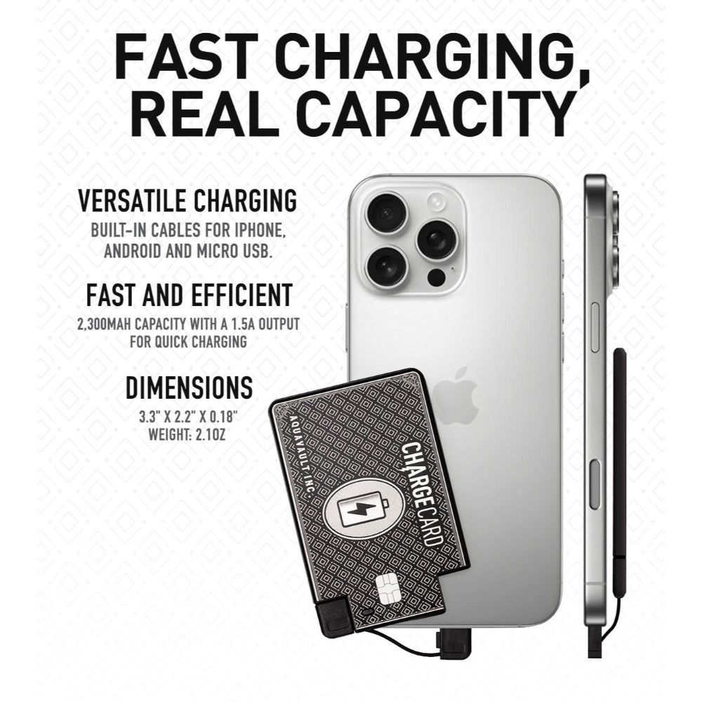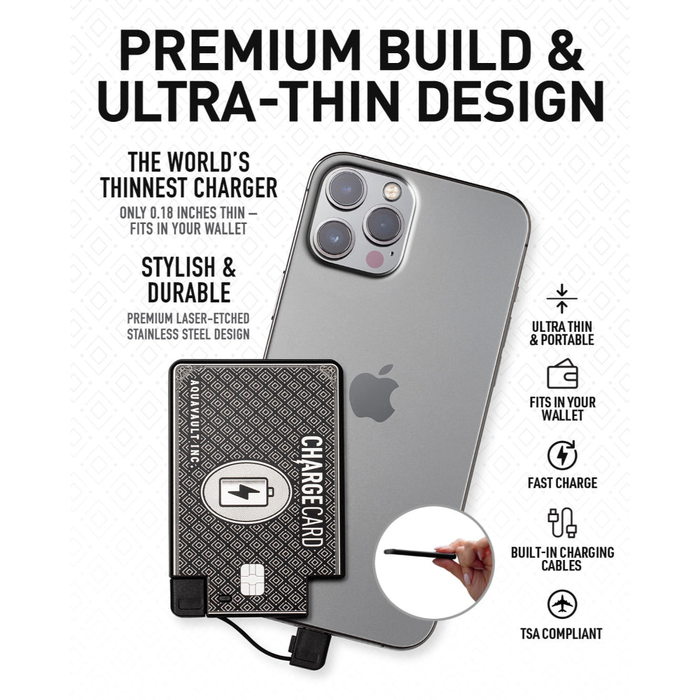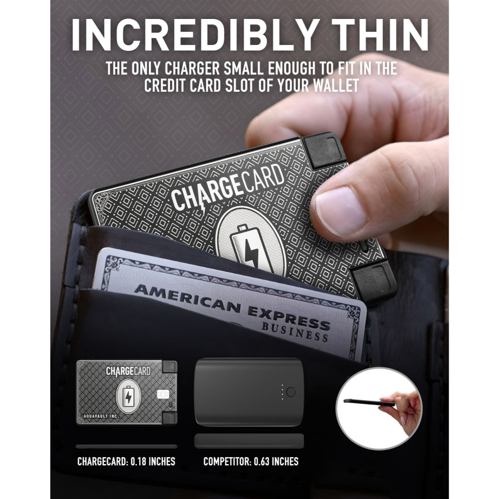 • The ChargeCard is a Credit-Card-Size Portable Charger that actually fits in your wallet (Most likely the smallest charger you have ever seen)