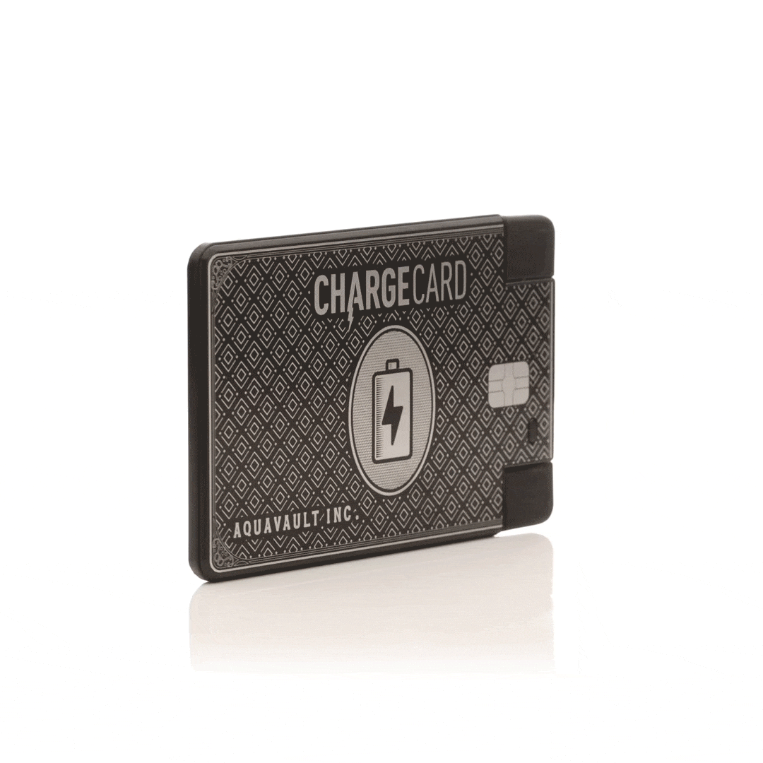 • Has four LED power lights which display how much battery is remaining. When the ChargeCard is dead, just charge it back up by plugging it into the wall or computer
