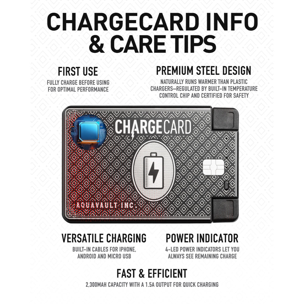 Proper care Instructions: Please read the instructions inside the box to fully understand how to properly use the ChargeCard which also includes what not to do.