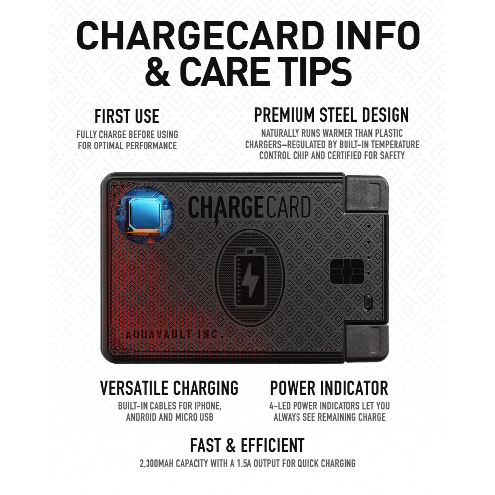 Proper care Instructions: Please read the instructions inside the box to fully understand how to properly use the ChargeCard which also includes what not to do.