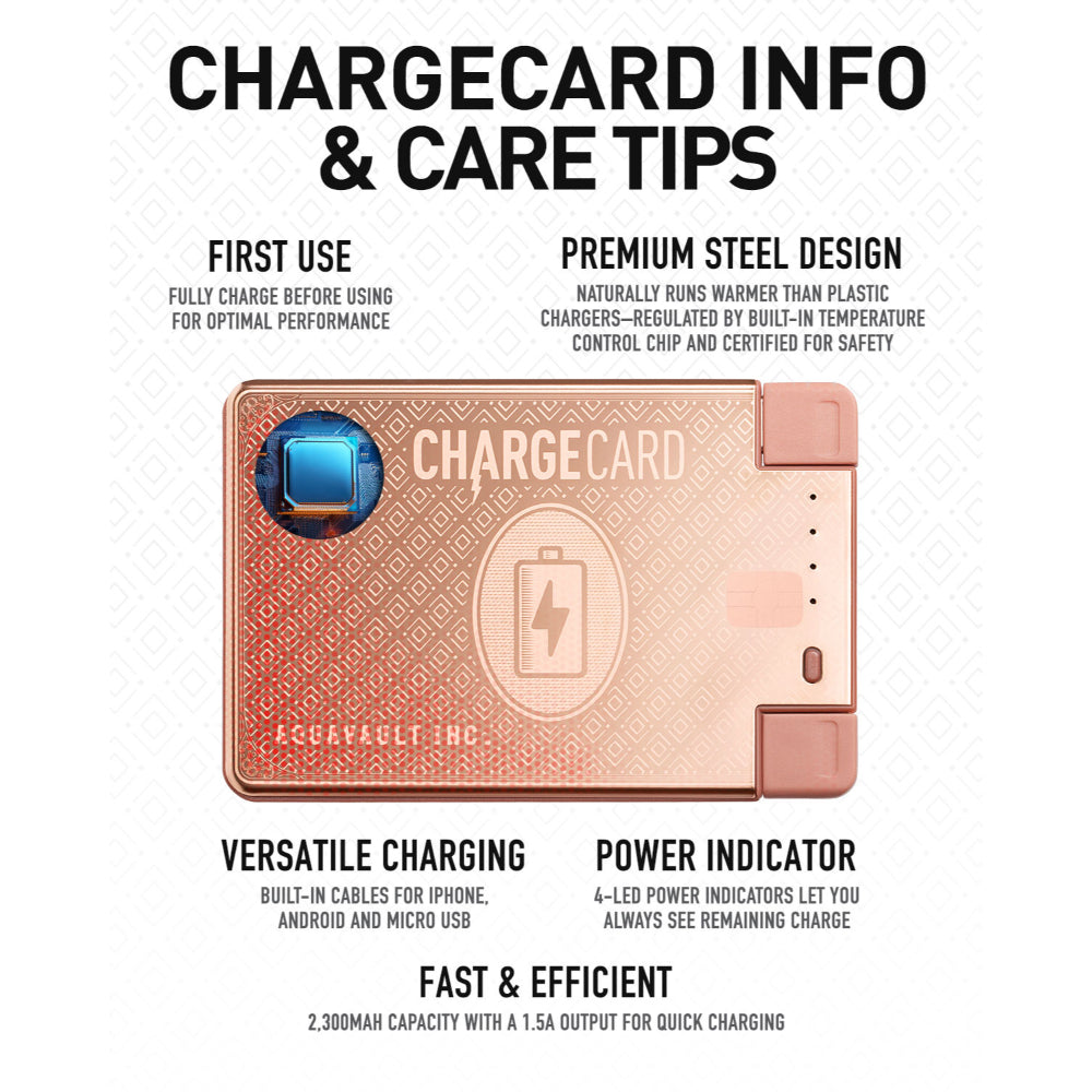 Proper care Instructions: Please read the instructions inside the box to fully understand how to properly use the ChargeCard which also includes what not to do.