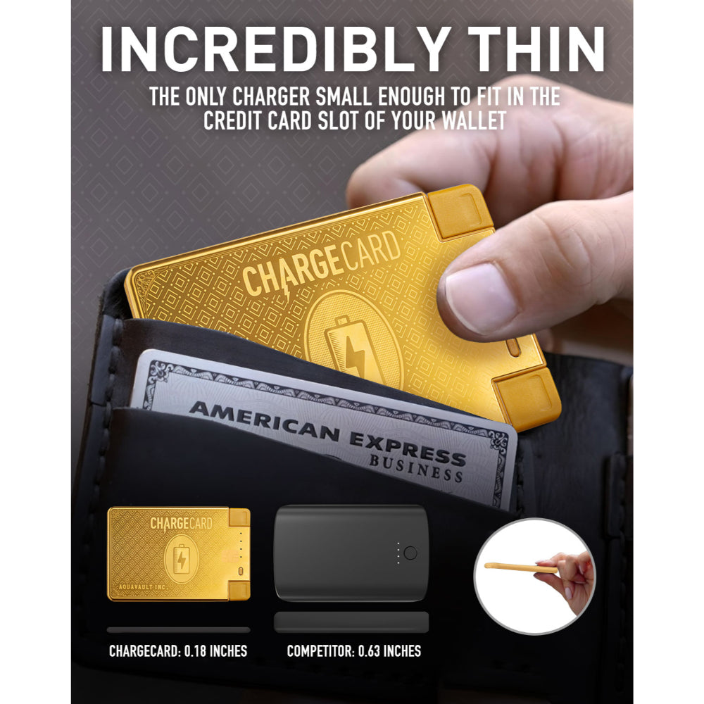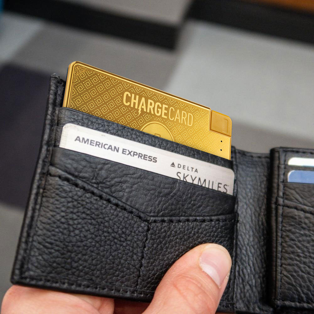 - The ChargeCard is a Credit-Card-Size Portable Charger that actually fits in your wallet (Most likely the smallest charger you have ever seen)
